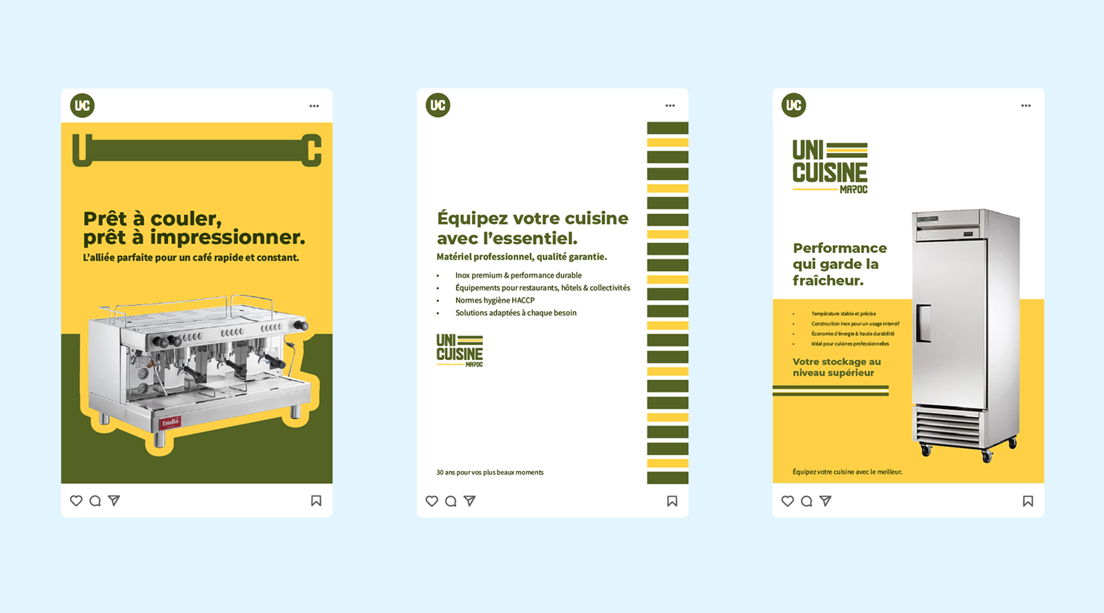 Chez Greativa Media Labs, nous avons accompagné Unicuisine dans la refonte de son identité de marque, ainsi que dans la conception de ses supports de communication. L’objectif a été de créer une image forte, moderne et cohérente, à la hauteur de son expertise et de son positionnement professionnel.
